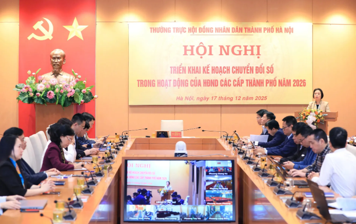 Tại hội nghị, HĐND thành phố triển khai kế hoạch chuyển đổi số của HĐND các cấp thành phố trong năm 2026, các nhiệm vụ trọng tâm giai đoạn 2026-2031 và các năm tiếp theo; ký kết Quy chế phối hợp trong công tác chuyển đổi số tại HĐND các cấp giữa Văn phòng Đoàn đại biểu Quốc hội và HĐND thành phố với Vụ Chuyển đổi số, Văn phòng Quốc hội; giữa Văn phòng Đoàn đại biểu Quốc hội và HĐND thành phố và Trung tâm Phục vụ hành chính công thành phố; giới thiệu ra mắt một số ứng dụng quản lý thông tin bầu cử thành phố Hà Nội, phòng họp không giấy tờ Q-Cabinet; giới thiệu, ra mắt và tập huấn sử dụng ứng dụng giải quyết kiến nghị cử tri gửi cấp thành phố, ứng dụng trí tuệ nhân tạo của HĐND các cấp; quán triệt việc triển khai phong trào "Bình dân học vụ số - Quốc hội số" tại HĐND thành phố và các xã, phường để phổ cập kiến thức, kỹ năng số cơ bản, trang bị kỹ năng làm việc trong môi trường số cho cán bộ, đại biểu HĐND các cấp.