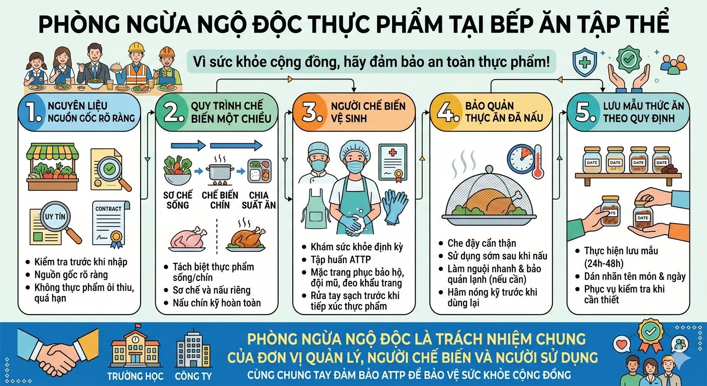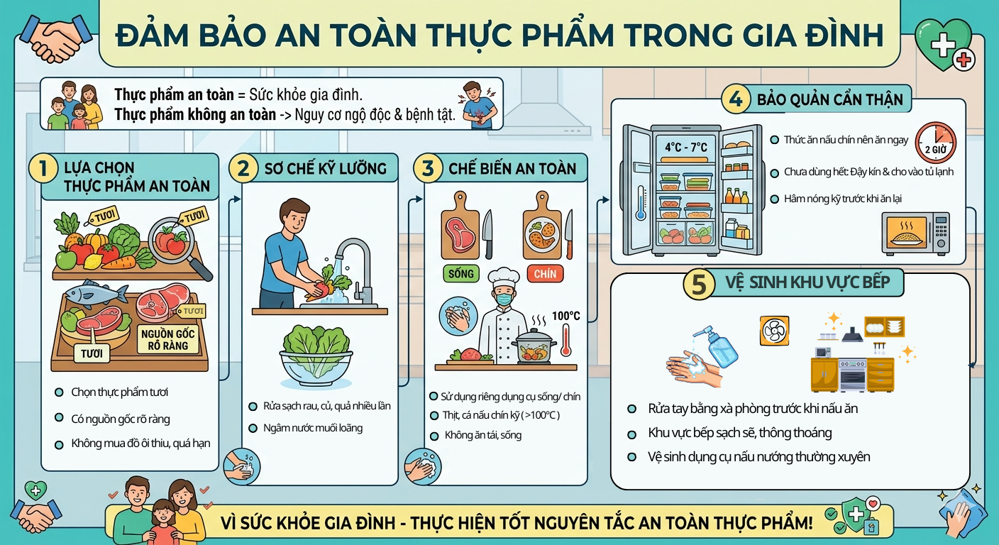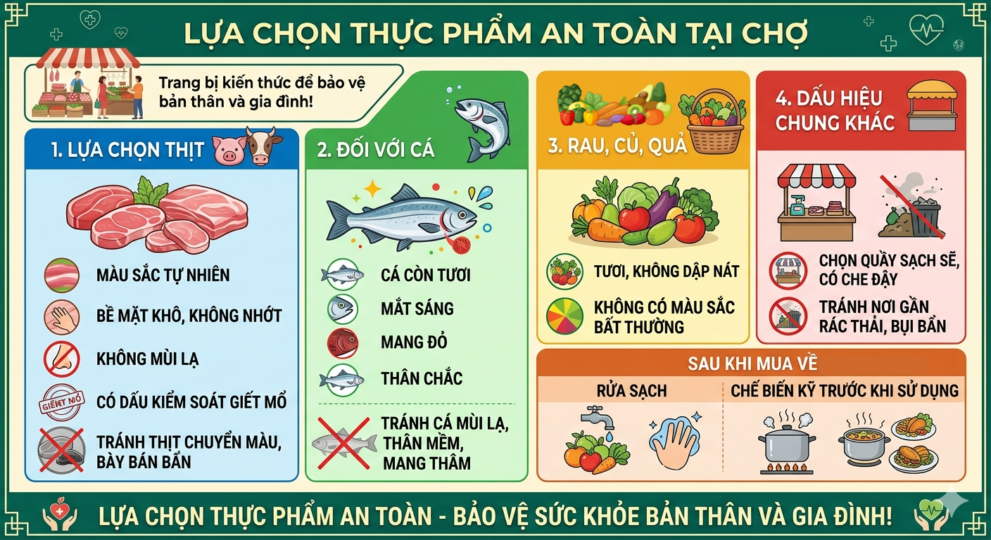 Trước thực trạng các cơ sở dịch vụ ăn uống và thức ăn đường phố phát triển nhanh, tiềm ẩn nhiều rủi ro về sức khỏe, các hộ kinh doanh và người dân nghiêm túc thực hiện các nguyên tắc vệ sinh an toàn thực phẩm. Hãy cùng theo dõi bộ infographic dưới đây để nắm vững kỹ năng chọn thực phẩm tươi sạch, quy trình chế biến an toàn và cách phòng ngừa ngộ độc hiệu quả. Vì sức khỏe cộng đồng, hãy nói không với thực phẩm không rõ nguồn gốc!