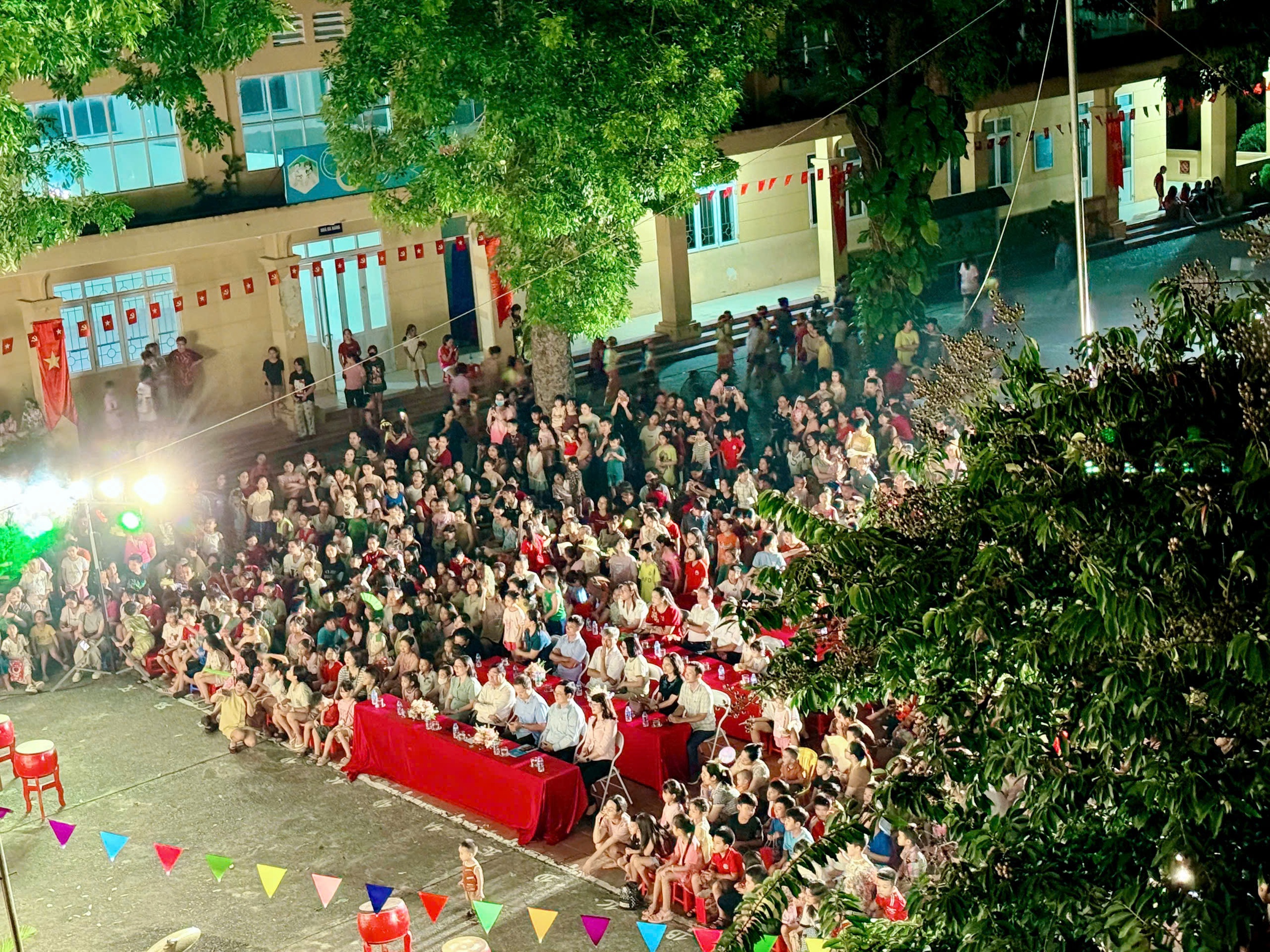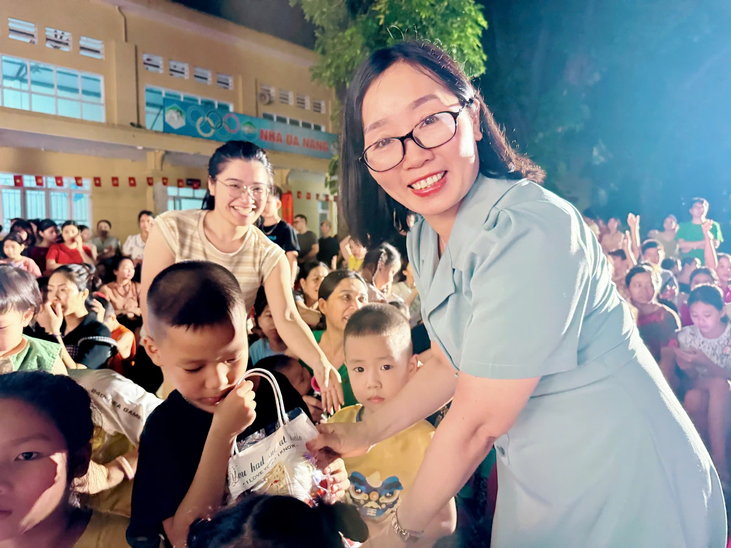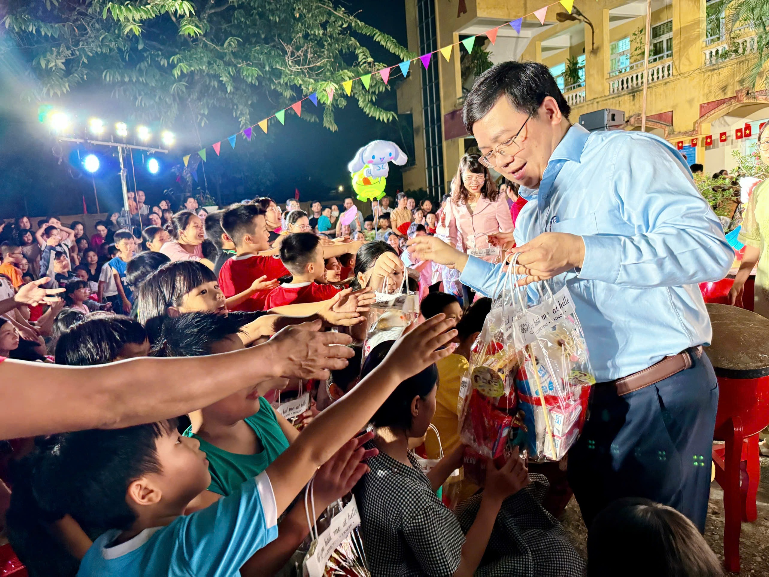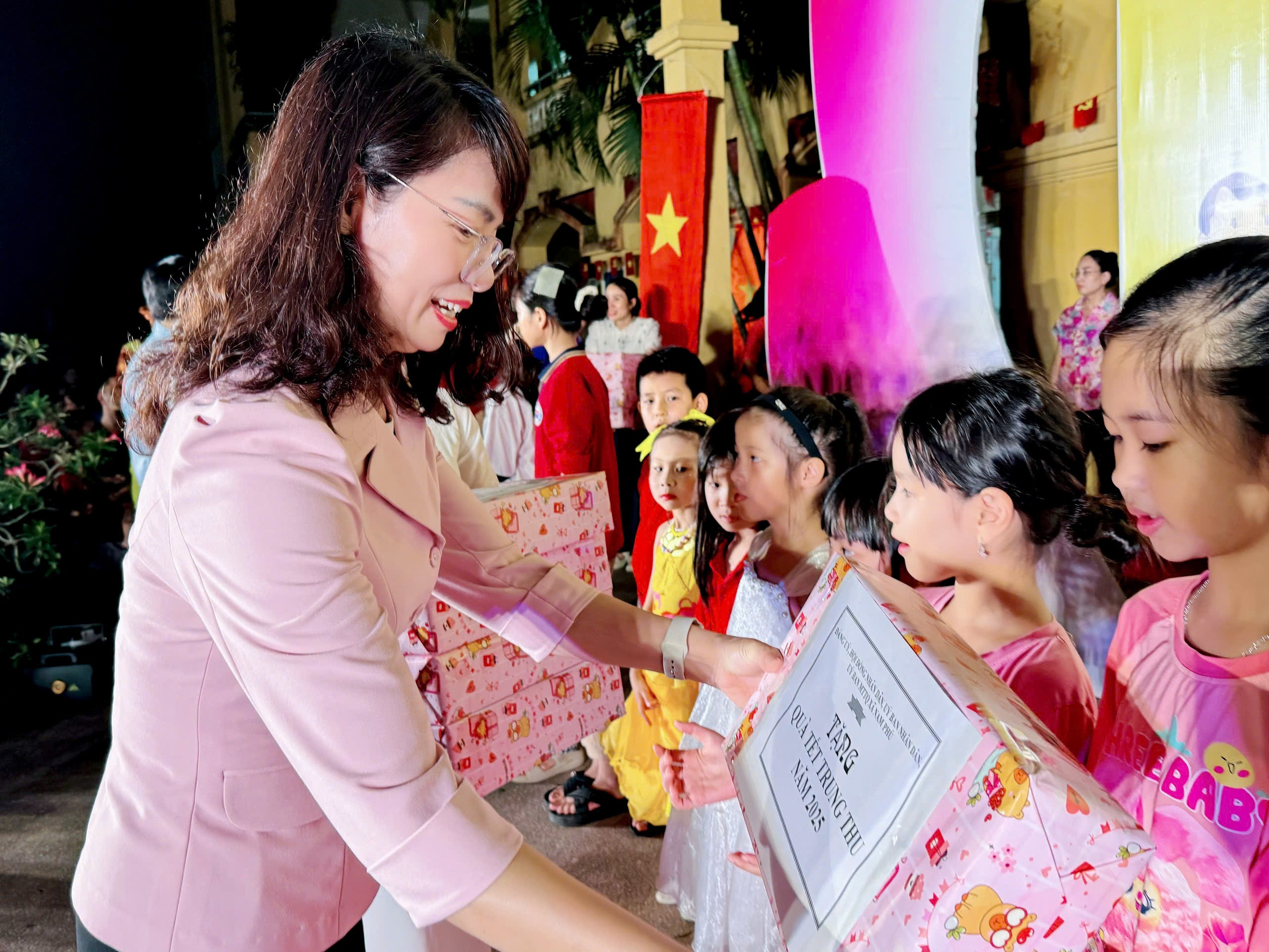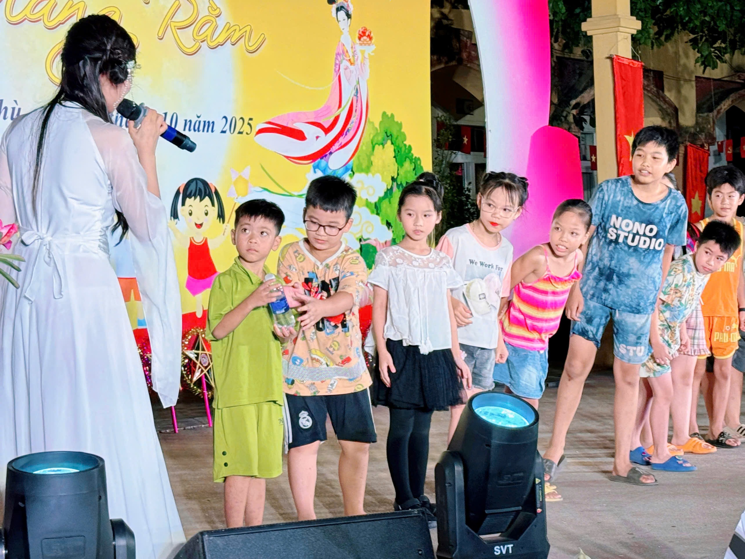 Trong không khí rộn ràng của đêm hội, các em thiếu nhi được tham gia nhiều tiết mục văn nghệ, múa lân, trò chơi dân gian đặc sắc.