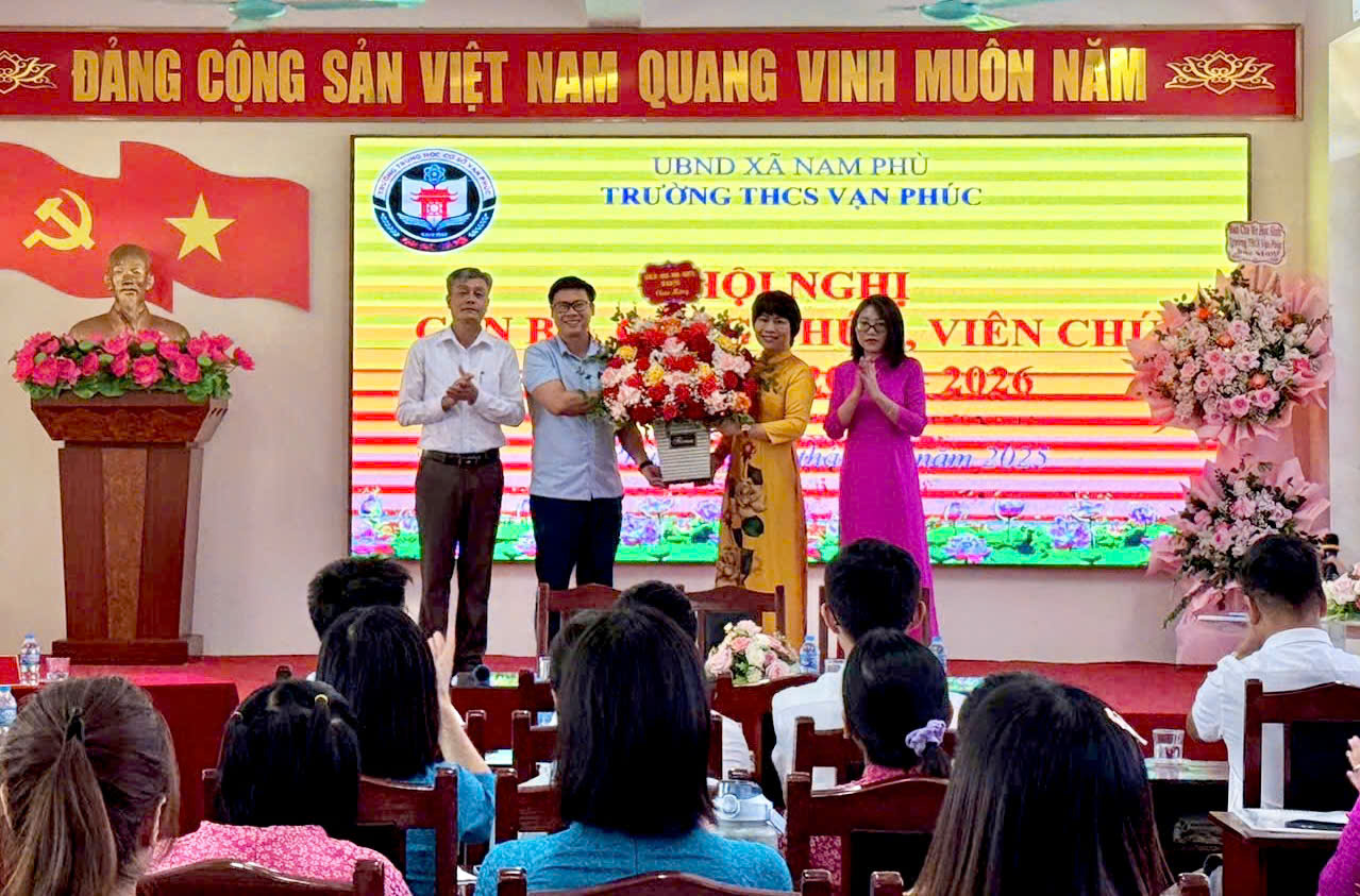 Tại Trường THCS Vạn Phúc, đồng chí Phạm Tiến Đạt – Trưởng Ban Xây dựng Đảng xã Nam Phù đã trực tiếp dự và chỉ đạo hội nghị. Trong phát biểu, đồng chí ghi nhận những nỗ lực của tập thể cán bộ, giáo viên, học sinh nhà trường trong năm học vừa qua, đồng thời nhấn mạnh: "THCS Vạn Phúc cần tiếp tục phát huy truyền thống, đổi mới sáng tạo trong giảng dạy, rèn luyện học sinh có tri thức, kỹ năng và bản lĩnh để đáp ứng yêu cầu mới."