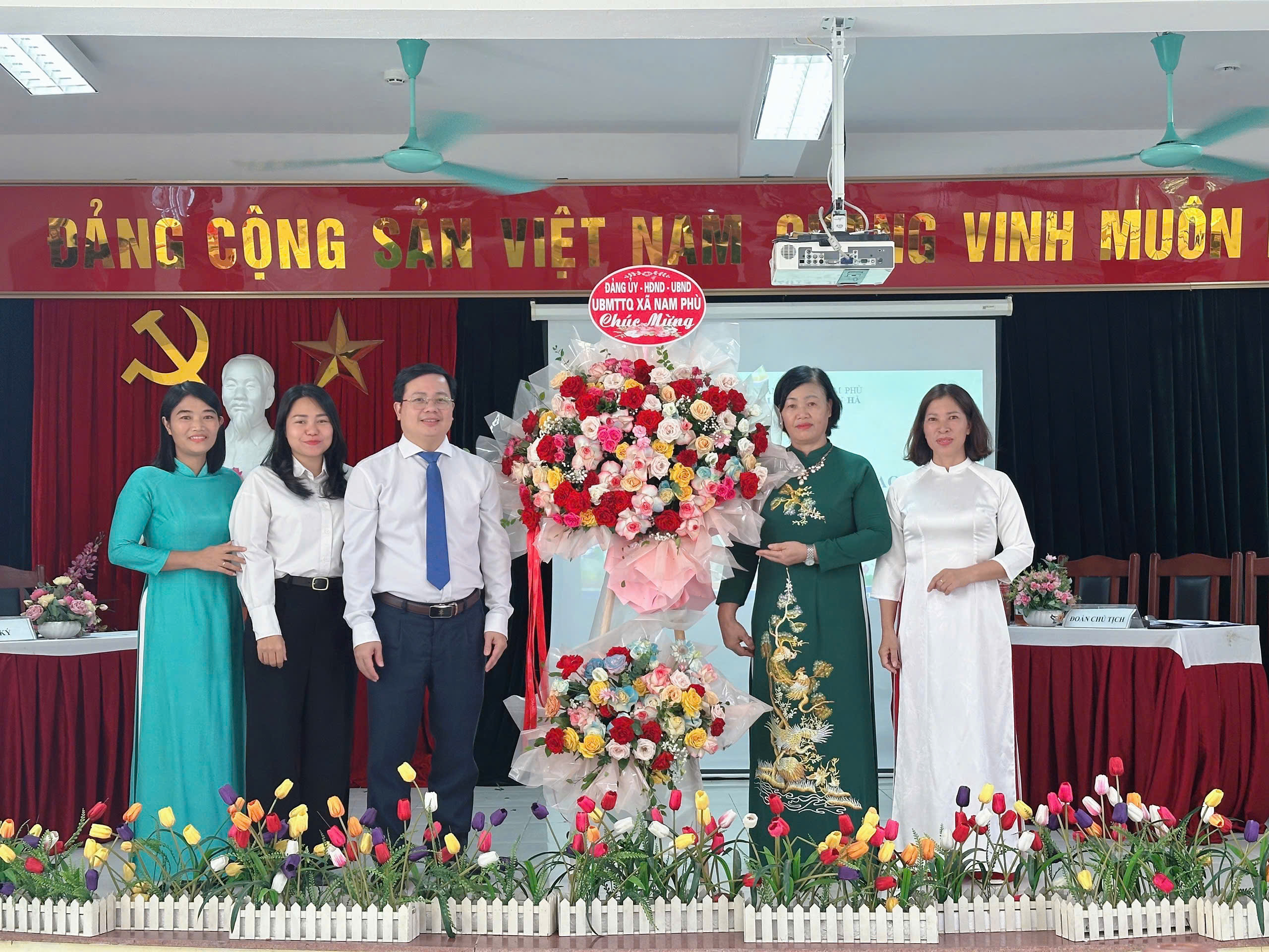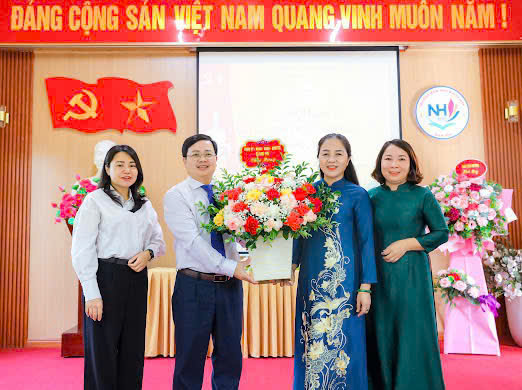 Lãnh đạo xã Nam Phù chúc mừng Trường Mầm non Duyên Hà