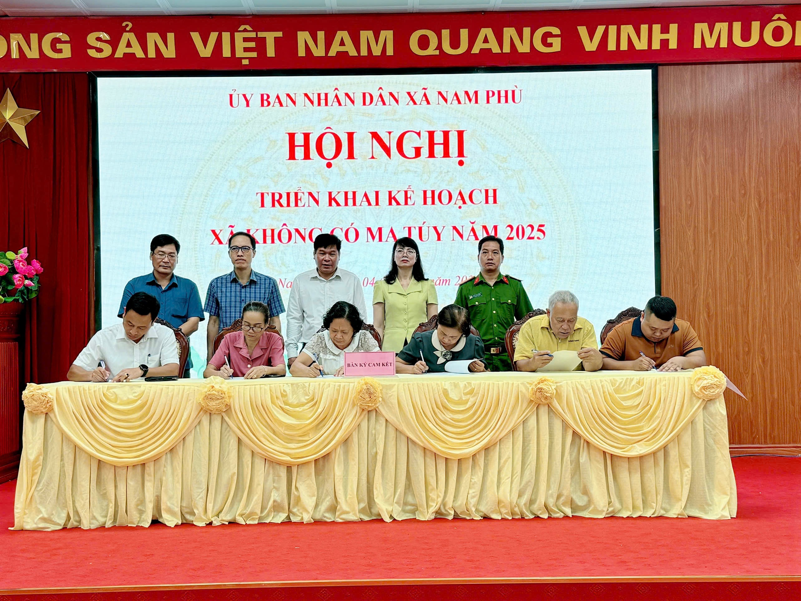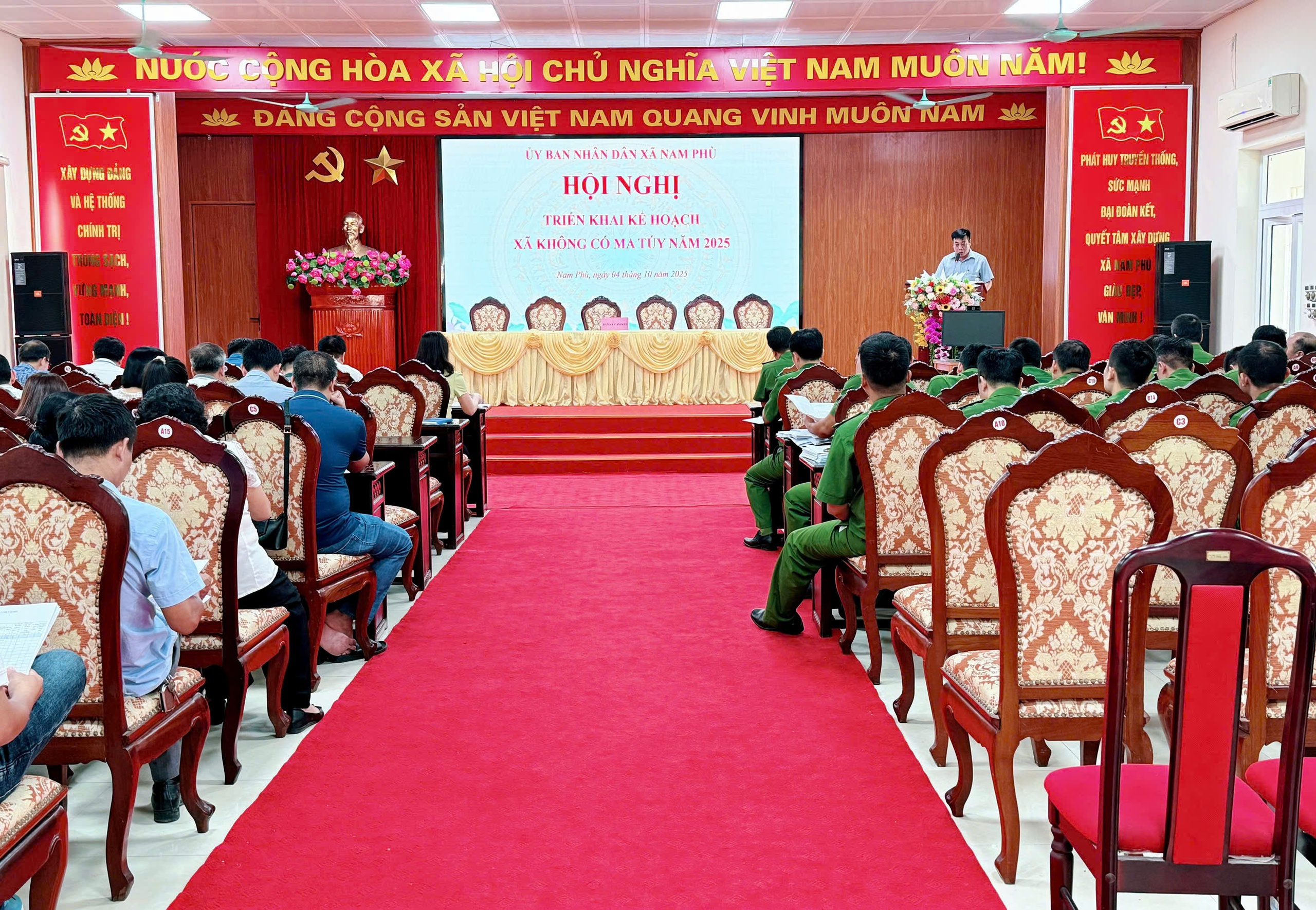 Phát biểu chỉ đạo tại hội nghị, đồng chí Nguyễn Thị Thu Huyền – Phó Bí thư Đảng ủy, Chủ tịch UBND xã nhấn mạnh: "Xây dựng xã Nam Phù không có ma túy không chỉ là nhiệm vụ trước mắt, mà còn là mục tiêu lâu dài. Sau sáp nhập đơn vị hành chính, chúng ta có nhiều thuận lợi nhưng cũng không ít thách thức. Muốn đạt mục tiêu đề ra, cần sự quyết tâm cao nhất từ cả hệ thống chính trị và nhân dân. Mỗi ban, ngành, đoàn thể, từng thôn, trường học phải đồng bộ triển khai giải pháp từ tuyên truyền, giáo dục, quản lý, cai nghiện đến xử lý nghiêm minh. Đặc biệt, lực lượng Công an xã phải phát huy vai trò nòng cốt trong nắm tình hình, phát hiện, đấu tranh với các hành vi liên quan đến ma túy, không để tội phạm ma túy có cơ hội tồn tại trên địa bàn.
