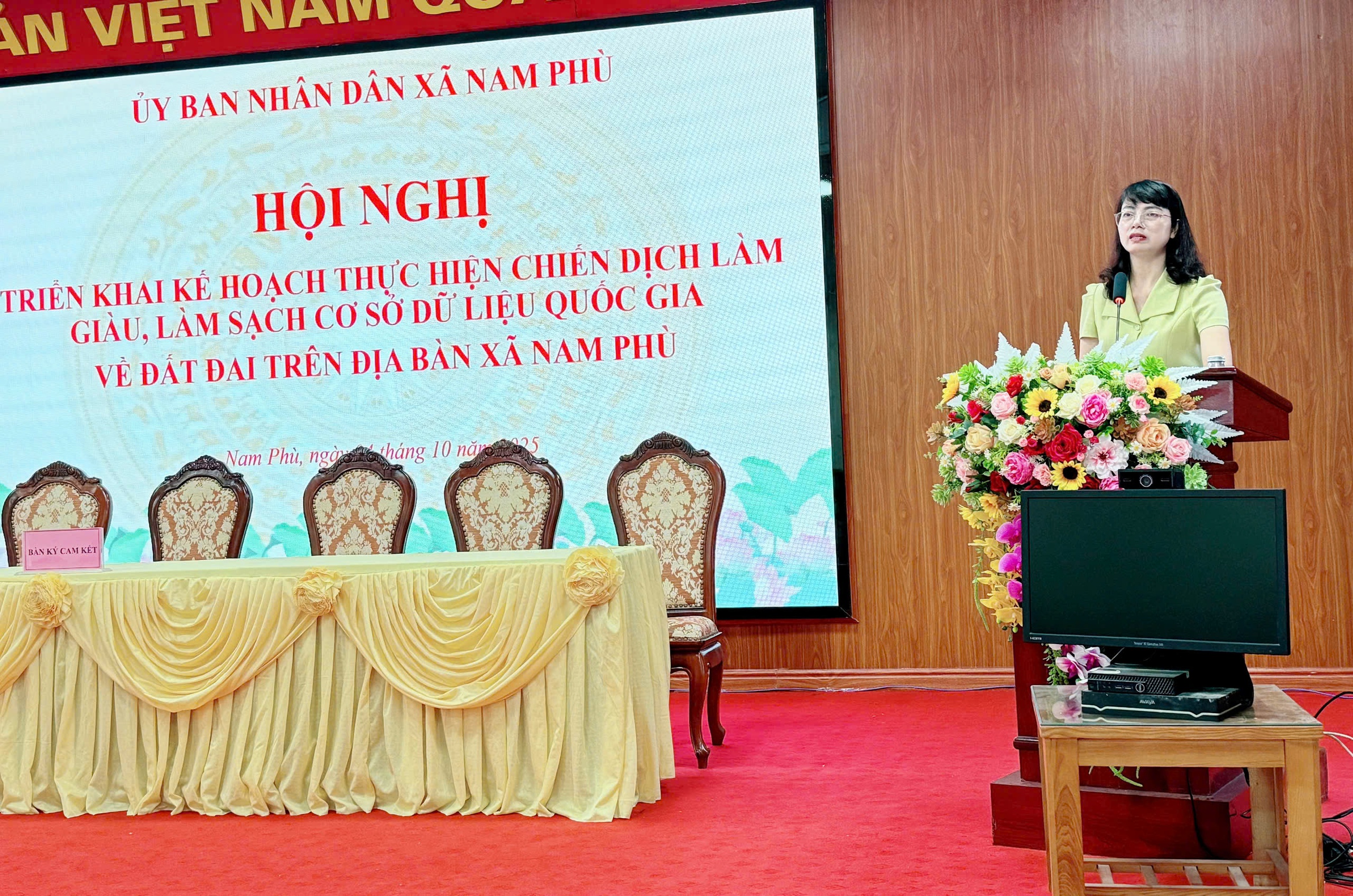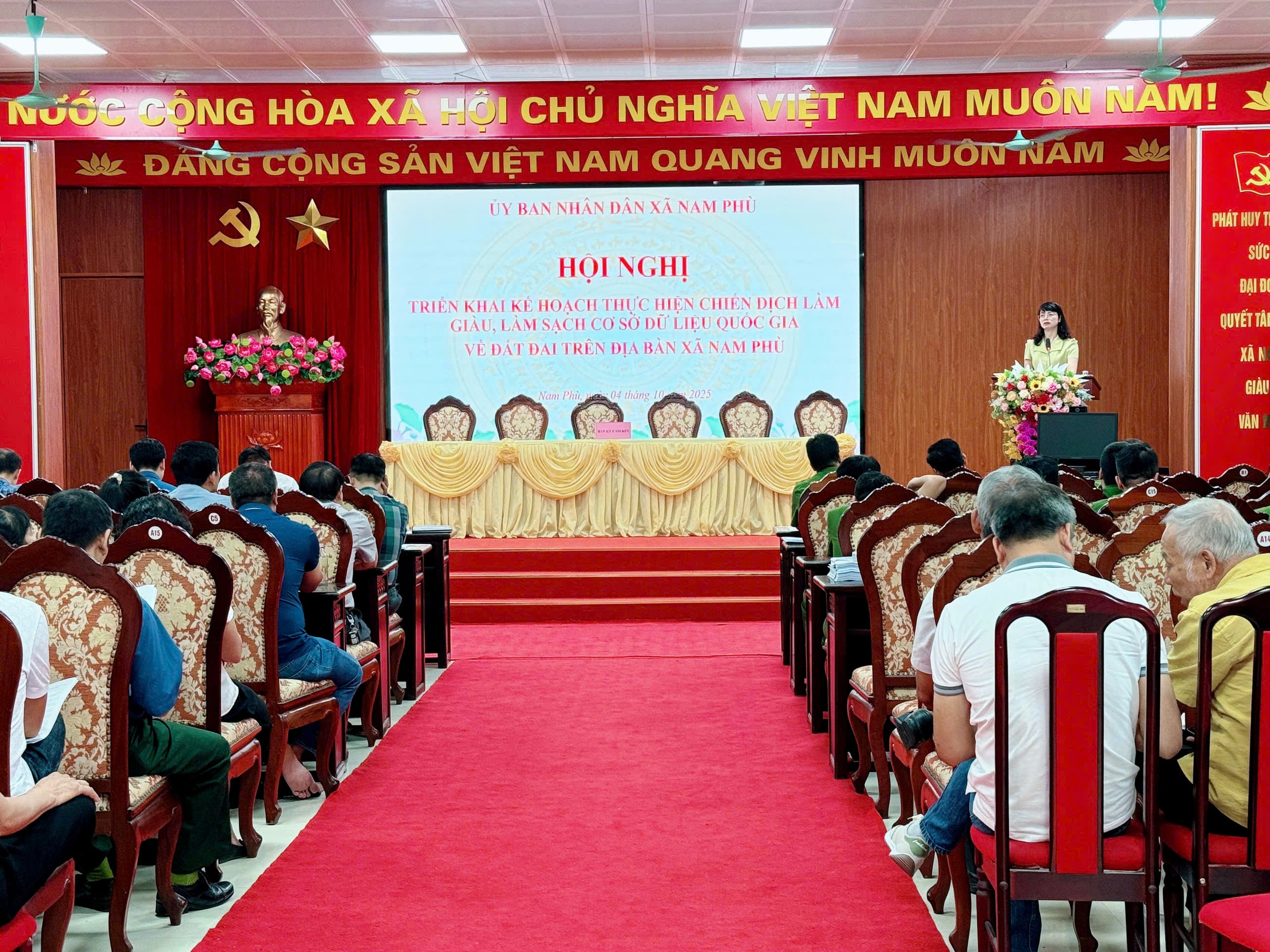 Phát biểu chỉ đạo tại hội nghị, đồng chí Nguyễn Thị Thu Huyền – Phó Bí thư Đảng ủy, Chủ tịch UBND xã nhấn mạnh: "Chiến dịch làm giàu, làm sạch cơ sở dữ liệu đất đai là nhiệm vụ đặc biệt quan trọng, liên quan trực tiếp đến quyền lợi của người dân và công tác quản lý nhà nước lâu dài. Đây không chỉ là công việc chuyên môn mà còn là trách nhiệm chính trị của cả hệ thống. Đồng chí yêu cầu toàn thể cán bộ, đảng viên, các ban ngành, đoàn thể và từng thôn phải vào cuộc với tinh thần trách nhiệm cao nhất; làm việc công khai, minh bạch, khoa học, đảm bảo "rõ người, rõ việc, rõ trách nhiệm, đúng tiến độ".