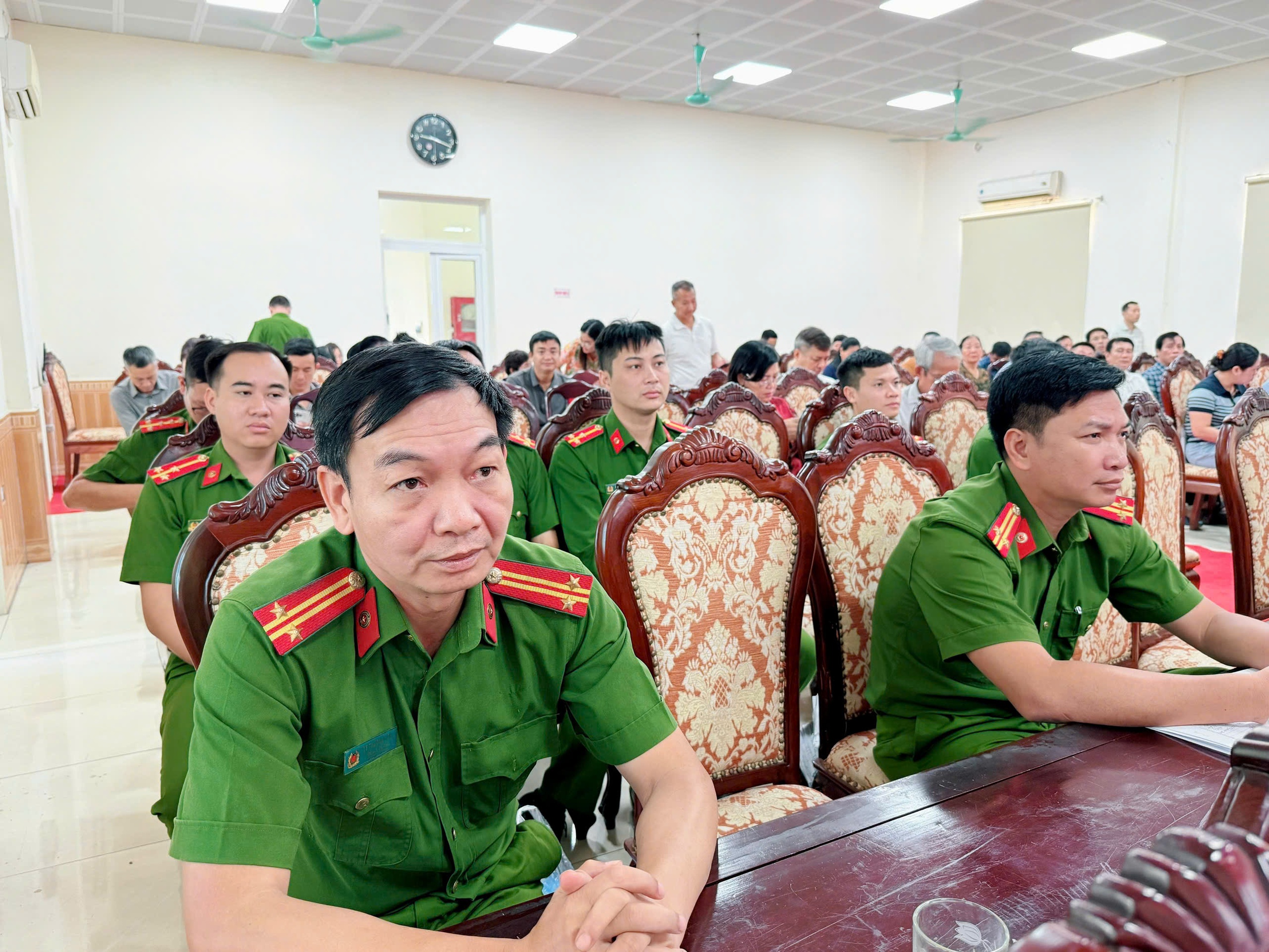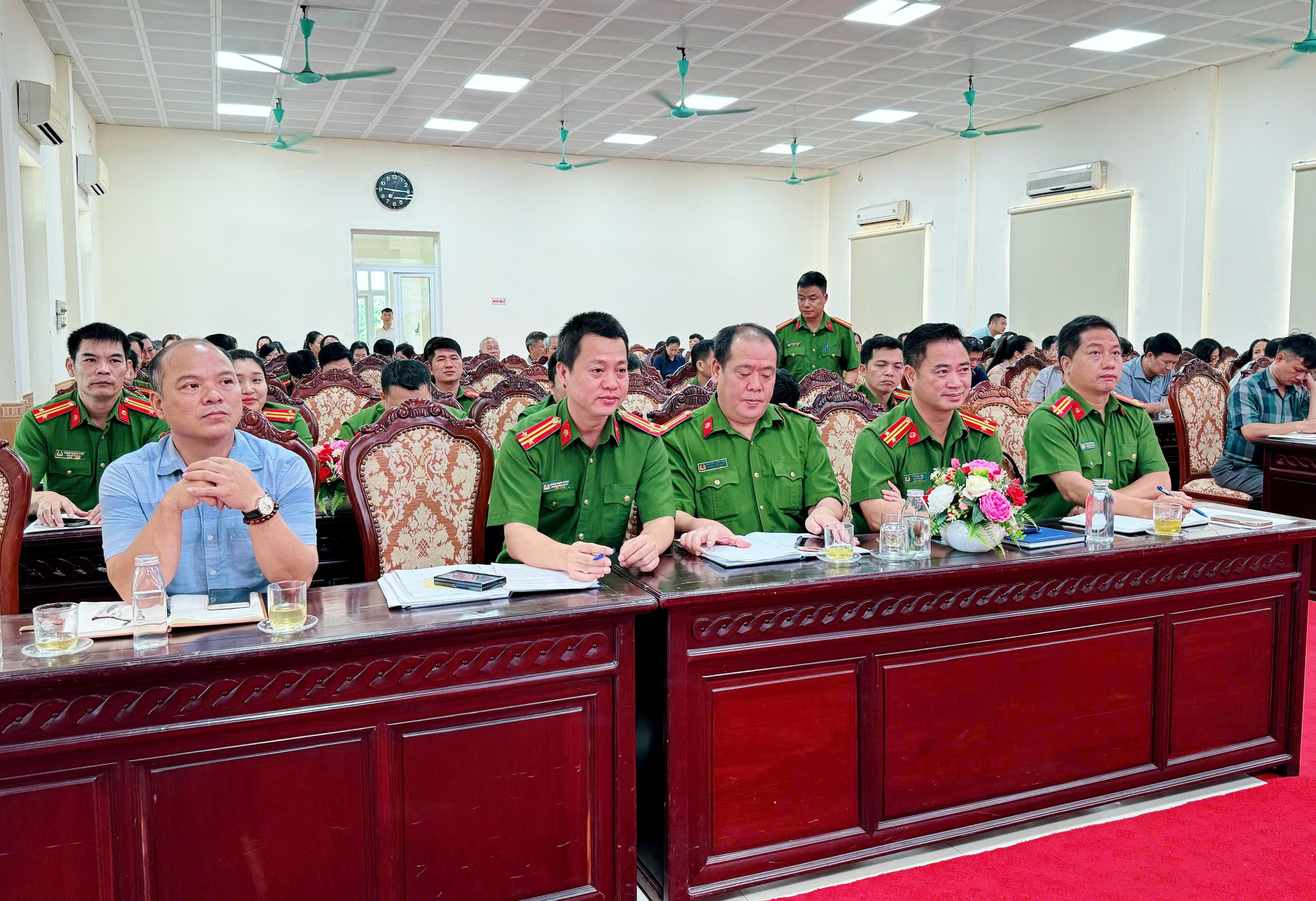 Tham dự hội nghị có đồng chí Nguyễn Thị Thu Huyền – Phó Bí thư Đảng ủy, Chủ tịch UBND xã; đồng chí Phạm Văn Thành – Chủ tịch UBMTTQ Việt Nam xã; đồng chí Lương Anh Dũng – Phó Chủ tịch HĐND xã; các đồng chí trong Ban Thường vụ Đảng ủy, Thường trực HĐND, UBND; lãnh đạo các ban, ngành, đoàn thể; trưởng thôn; Ban Chỉ huy, cán bộ, chiến sĩ Công an xã.